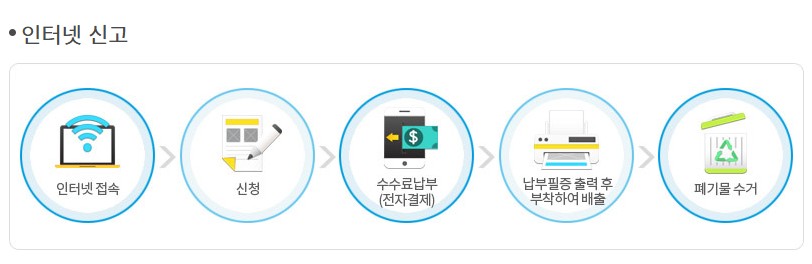 - 지정된 날짜 밤 10시 이전까지 배출 장소(집 앞 등)에 내놓기