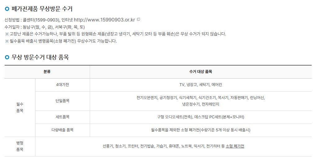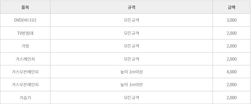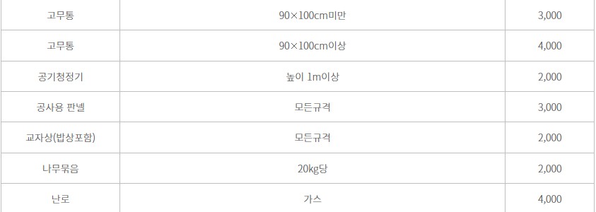 - 가전제품: 전기히터, 선풍기, 전자렌지 등 (※ 일부는 무료 수거 가능)
