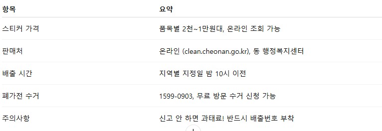 📌 정확한 가격은 천안시 대형폐기물 신고 시스템에서 확인 가능합니다.