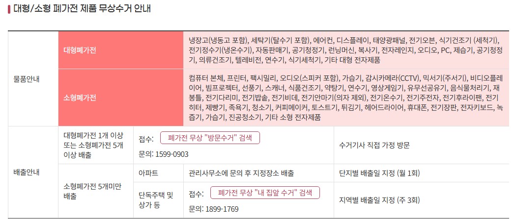 - 냉장고, 세탁기, 에어컨, TV 등 대형 폐가전 1개 이상