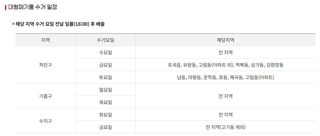 - 처인구: 매주 수·금, 토