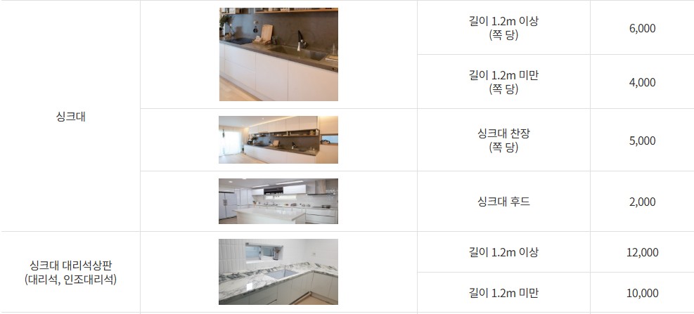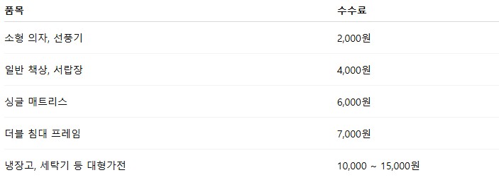 대형폐기물 수수료 기준 (품목별 요금)