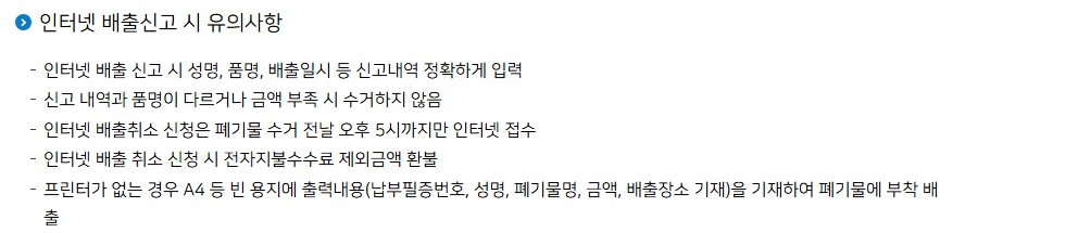 💡 주의: 인터넷 신청 없이 무단 배출 시 불법 투기로 간주되며 과태료가 부과됩니다.