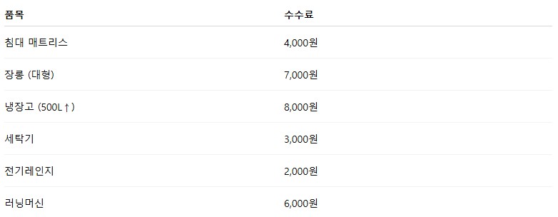 - 수거 가능 품목: 냉장고, 세탁기, 에어컨, TV, 공기청정기 등