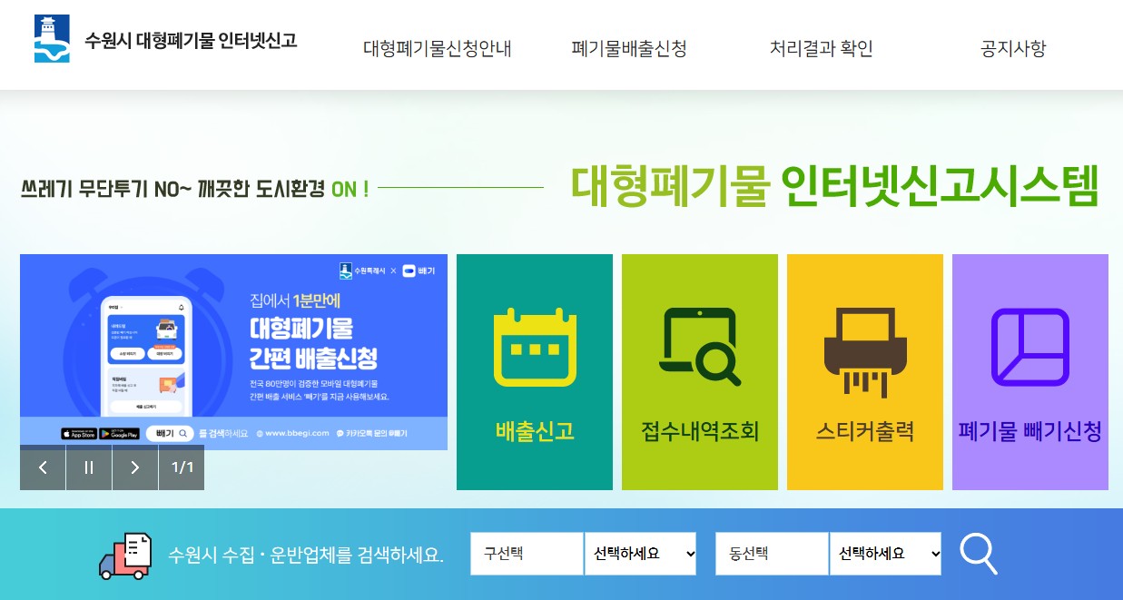 - 신청 사이트: 수원시 대형폐기물 신고 시스템