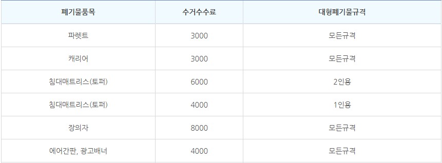 ☞ 평택시 대형폐기물 스티커 요금표 확인