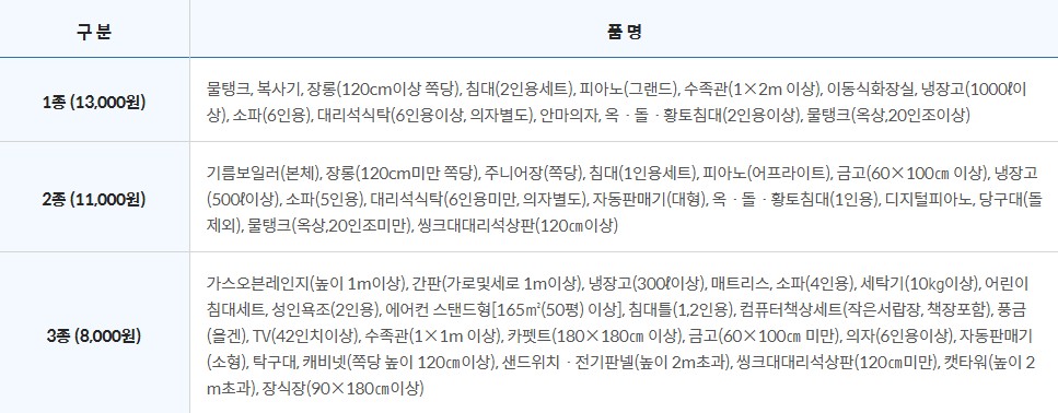 - 분리 가능한 제품은 분리해서 배출: 예) 침대 매트리스와 프레임은 따로 신고
