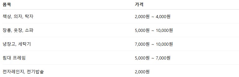 안산시 대형폐기물 스티커 가격은 품목별로 다르게 책정되어 있습니다. 아래는 대표 품목의 예시입니다.