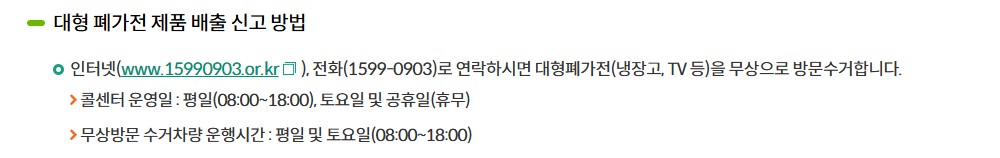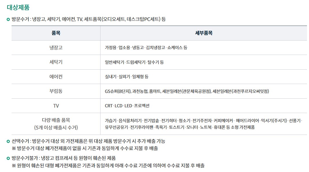 - 가전제품은 무료수거 신청 우선 고려