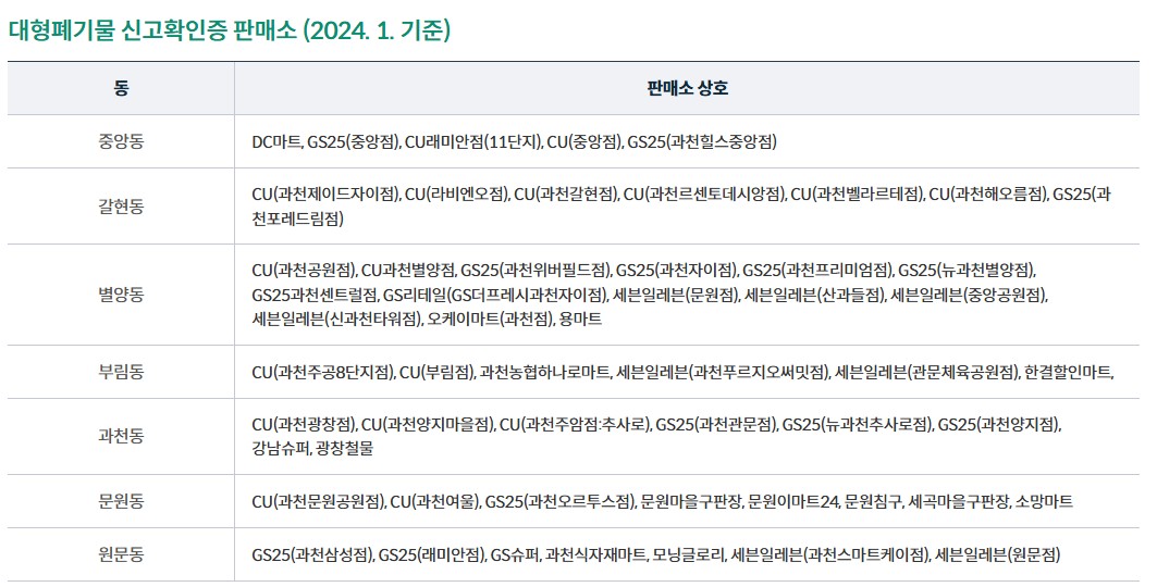 과천시 대형폐기물스티커 판매처