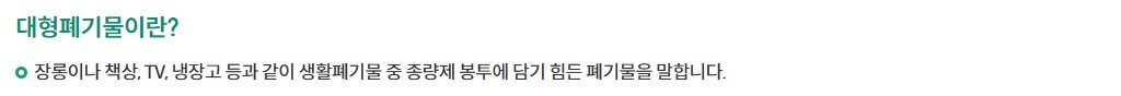 '대형폐기물'이란 일반 종량제봉투에 담기 어려울 정도로 크거나 무거운 폐기물을 말합니다.
