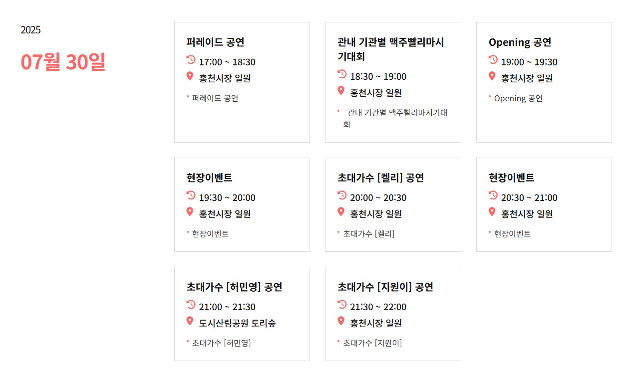 - 퍼레이드: 홍천시장 일원 / 17:00~18:30
