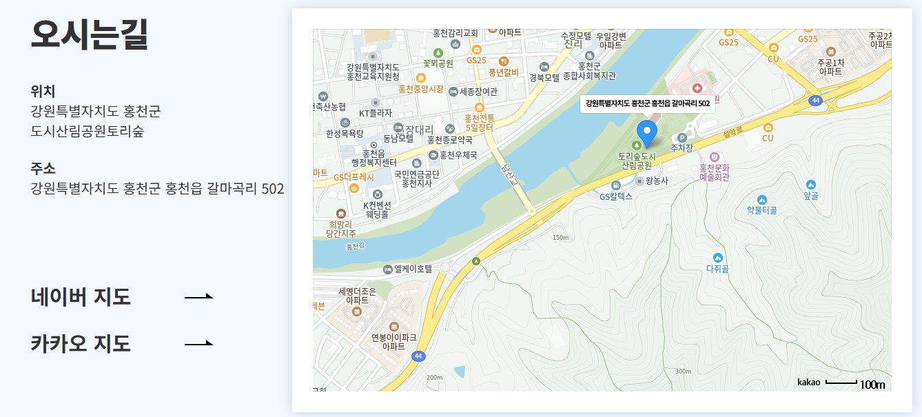 위치 : 강원특별자치도 홍천군 도시산림공원토리숲