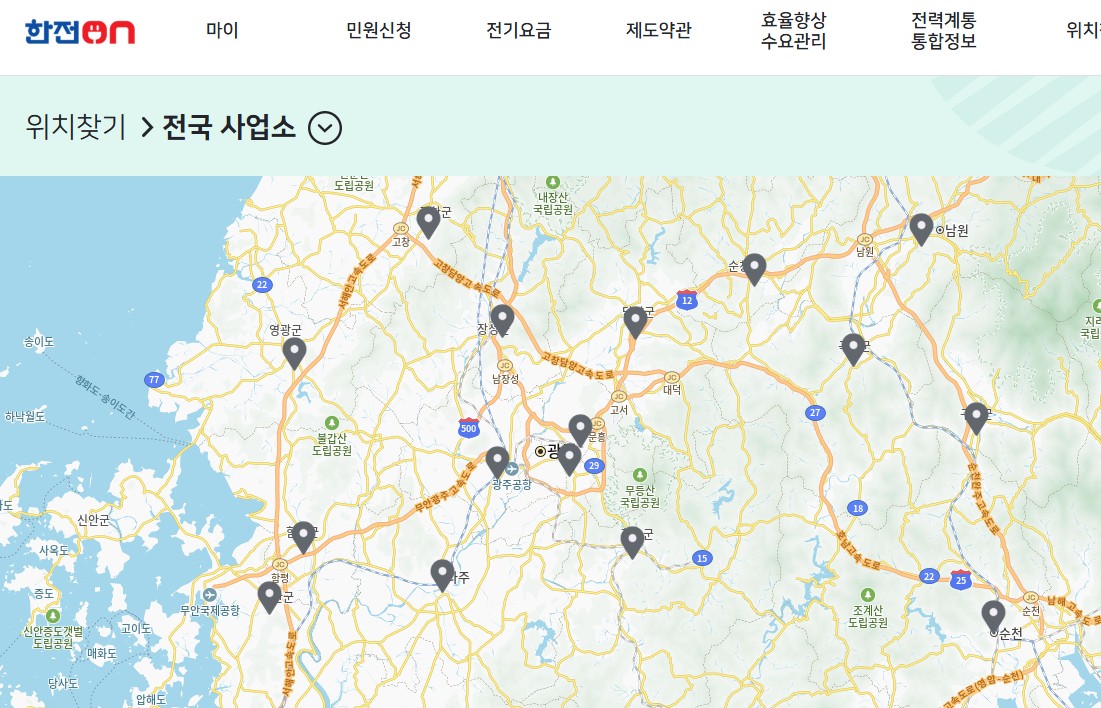 가까운 한전 사업소 찾기