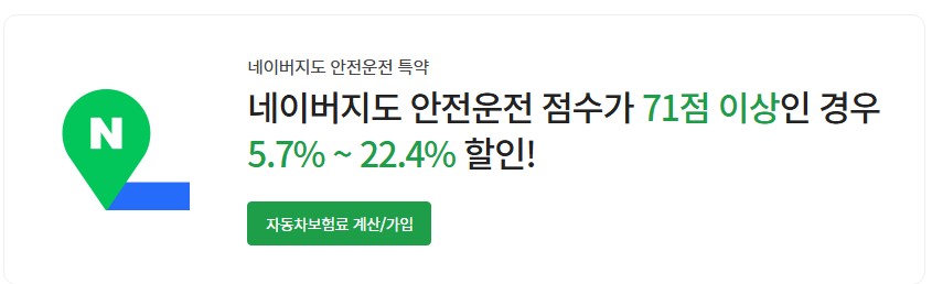 DB손해보험은 네이버지도 앱의 ‘안전운전 점수’를 기준으로 최소 5.7% ~ 최대 22.4%까지 보험료를 할인해 주는 특약을 운영 중입니다.