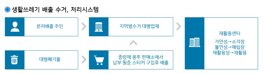 - 지정된 배출일 새벽 6시까지 주거지 앞에 배출