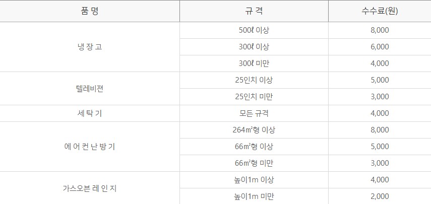 - 가전제품 중 일부는 자원 회수율에 따라 유료로 처리