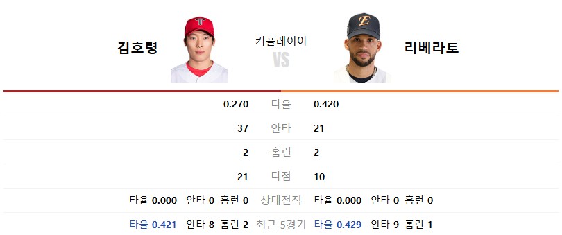 한화의 해결사 역할을 톡톡히 하고 있는 리베라토는 장타력과 컨택 능력 모두 뛰어난 전천후 타자입니다. 윤영철의 제구가 흔들리는 순간을 놓치지 않고 장타로 연결시킬 가능성이 높습니다.
