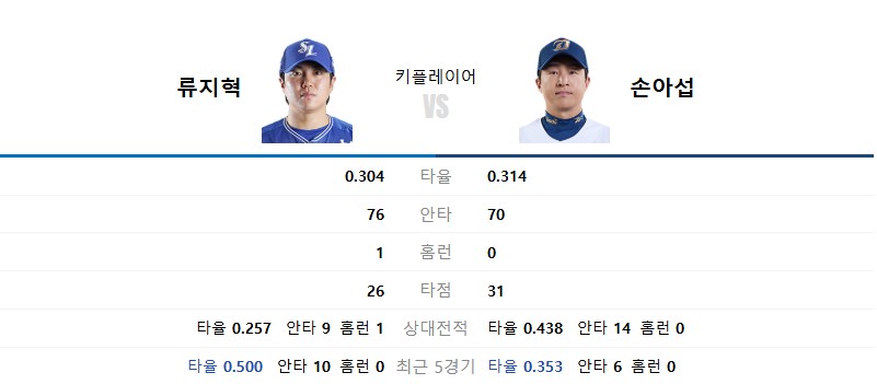 키플레이어 매치업 – 류지혁 vs 손아섭