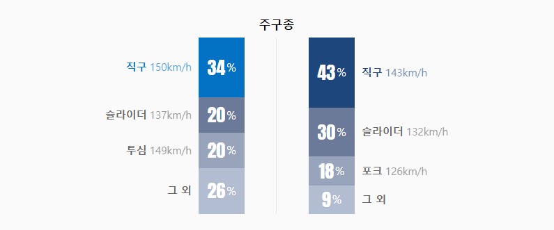 - 직구 143km/h (43%), 슬라이더 132km/h (30%)