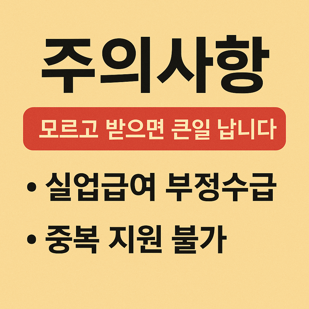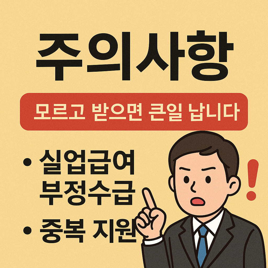실업급여는 실직 후 재취업 활동을 지원하기 위한 소중한 제도입니다. 하지만 제도에 대한 정확한 이해 없이 신청하거나 수급 도중 주의사항을 놓치면 부정수급으로 간주되어 불이익을 받을 수 있습니다. 특히 최근 고용노동부의 부정수급 단속이 강화되고 있어 주의가 필요합니다. 이번 글에서는 실업급여를 신청했거나 수급 중인 분들이 반드시 숙지해야 할 주의사항 2가지(부정수급, 중복 지원 금지)에 대해 자세히 안내해 드립니다.