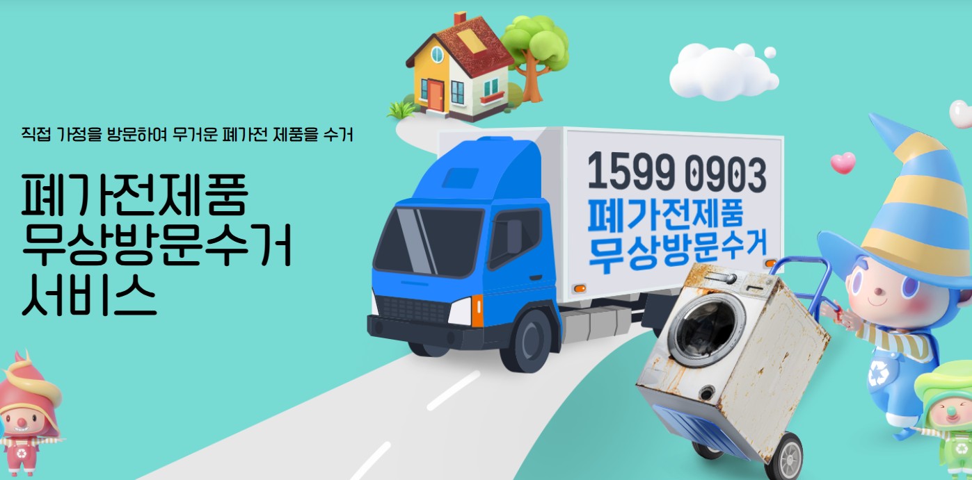 대형가전제품은 환경부와 한국전자제품자원순환공제조합에서 운영하는 **‘폐가전 무상수거 서비스’**를 통해 무료로 수거할 수 있습니다.