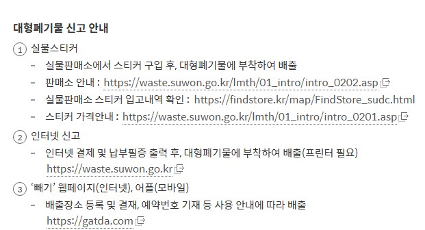 수원시 대형폐기물 스티커 가격, 판매처, 무료배출, 대형폐기물배출방법 총정리!