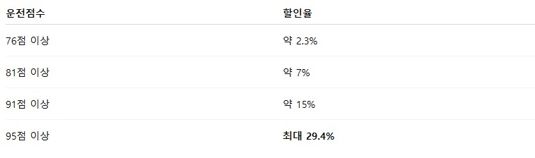 💡 고득점일수록 할인폭이 크게 증가하므로, 꾸준한 안전운전이 보험료 절감의 핵심입니다.